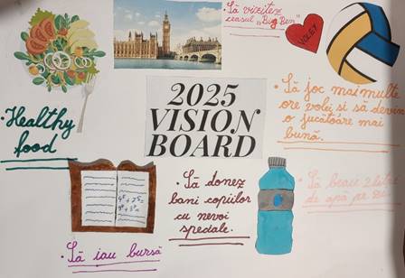 Am făcut și o planșă cu dorințele mele, un Vision Board și acest lucru m-a ajutat să mă gândesc la ceea ce îmi doresc cel mai mult să fac și să învăț.