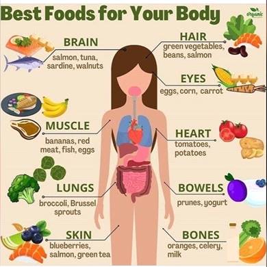 Alimentele sunt foarte importante pentru că furnizează substanțele nutritive care asigură energia necesară proceselor vitale. Aceste substanțe nutritive sunt: proteinele, carbohidrații, vitaminele, mineralele, grăsimile și apa. Hidratarea optimă constă în 6-8 pahare de apă pe zi. Este important să luăm masa la aceeași oră în fiecare zi, să mestecăm fară grabă, să nu ne uităm la televizor și nici la telefon, să fim calmi, relaxați. Micul dejun este foarte important pentru că ne dă energie pe tot parcursul zilei. Între mese nu trebuie să mâncăm decât fructe, semințe.