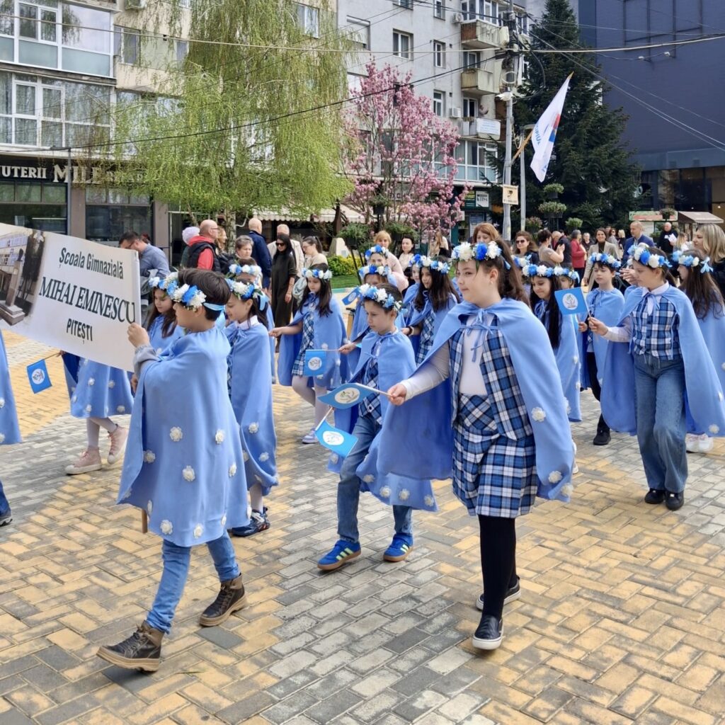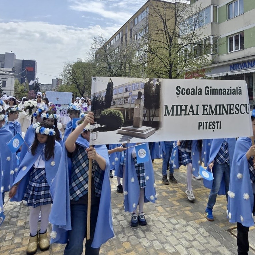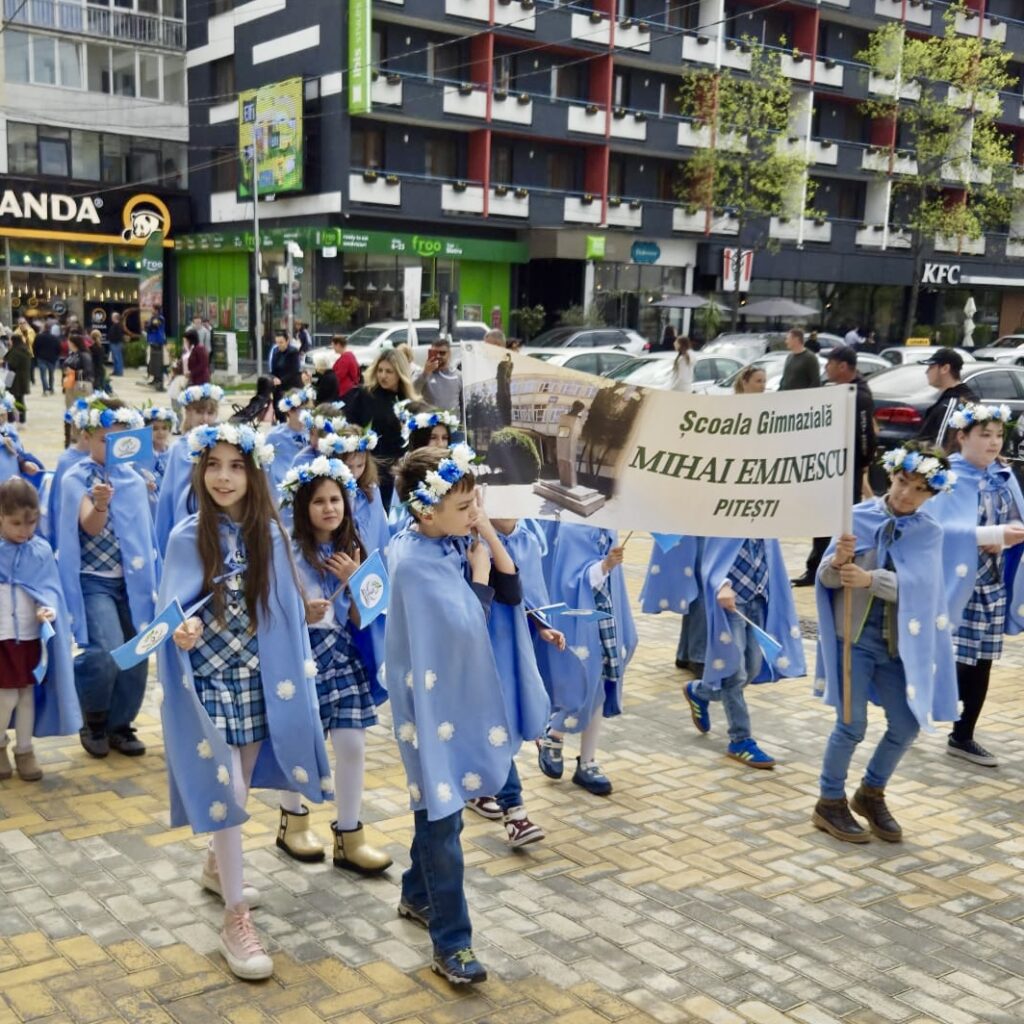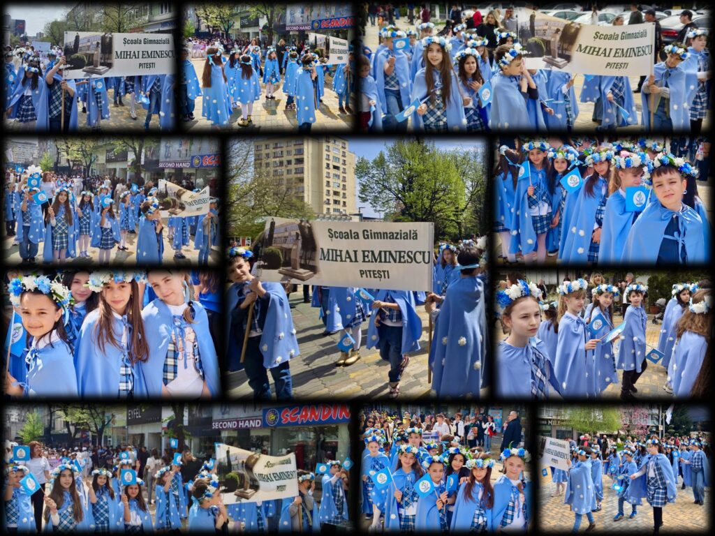 💐Școala Gimnazială „Mihai Eminescu” Pitești a participat la Parada Florilor, în centrul Municipiului Pitești, o manifestare în cadrul Simfoniei Lalelelor, evenimentul simbol care transformă an de an comunitatea într-o veritabilă grădină urbană. Îmbrăcați în uniformă și purtând în mâini stegulețe cu simbolurile instituției de învățământ, micii „eminescieni” au parcurs traseul paradei cu zâmbete largi, captivând privirile spectatorilor. Entuziasmul copiilor a demonstrat, încă o dată, că spiritul Școlii „Mihai Eminescu” este unul viu, orientat către frumos și implicare socială. A fost o zi memorabilă în care gingășia lalelelor s-a împletit armonios cu inocența copilăriei, lăsând în urmă amintiri prețioase pentru elevi, părinți și profesori deopotrivă.